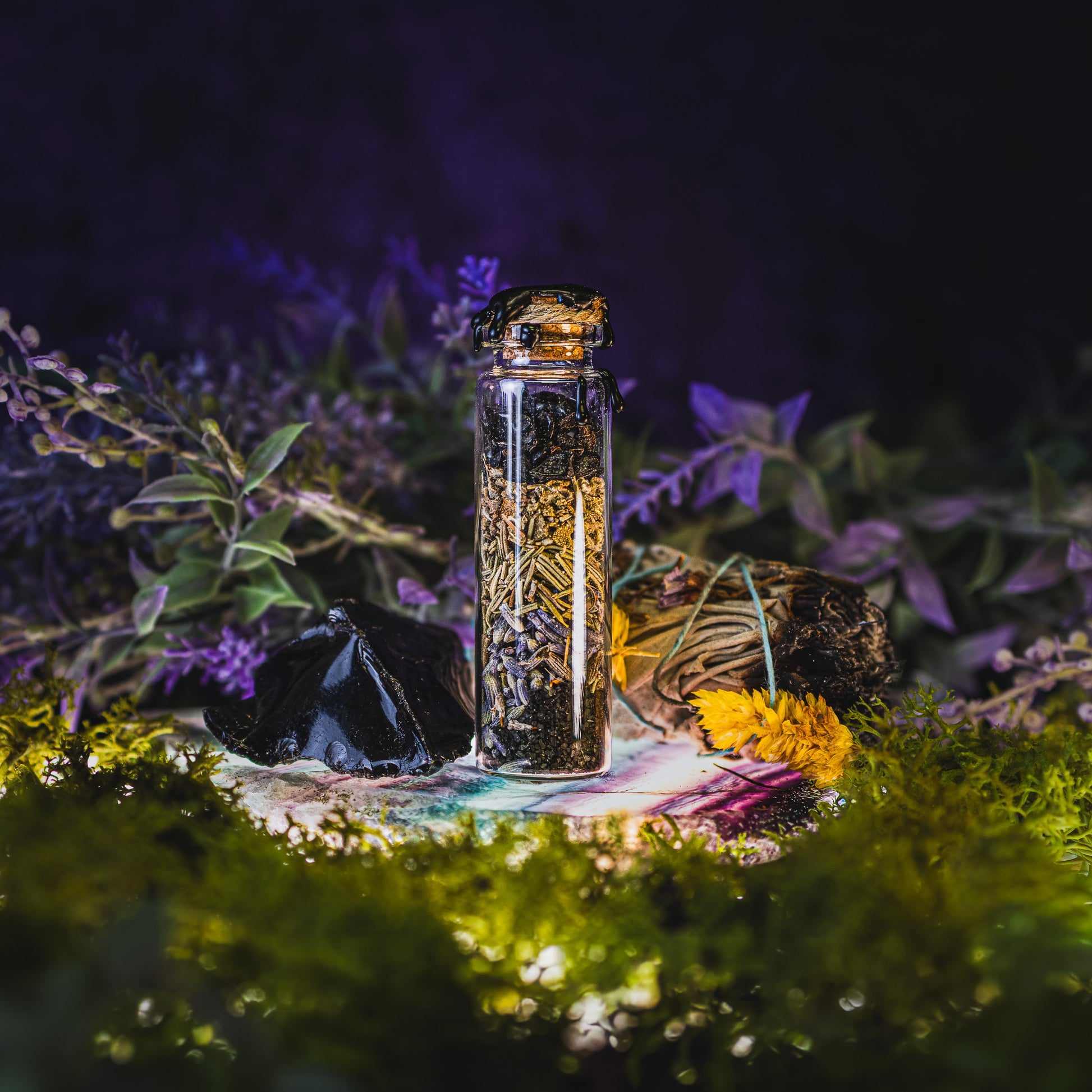 15ml glass bottle, sealed in black wax, handcrafted with intention and charged in ritual.